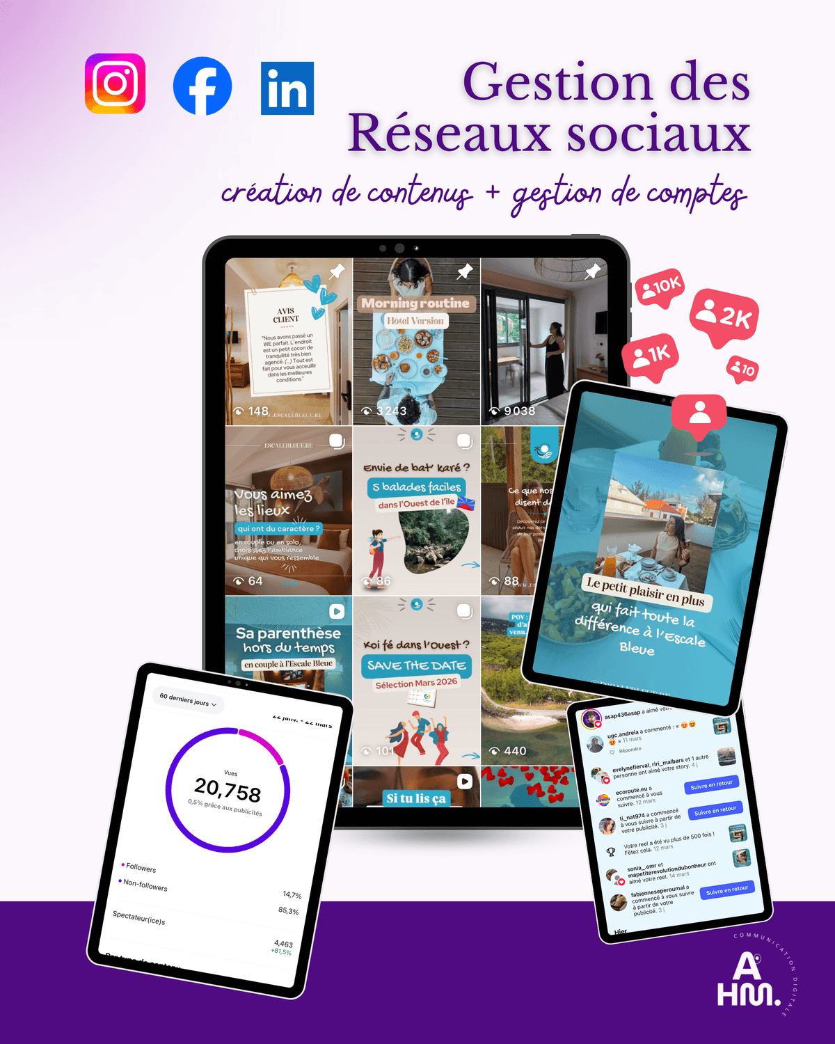 Community Management : 3 publications par semaine sur 2 à 3 réseaux sociaux